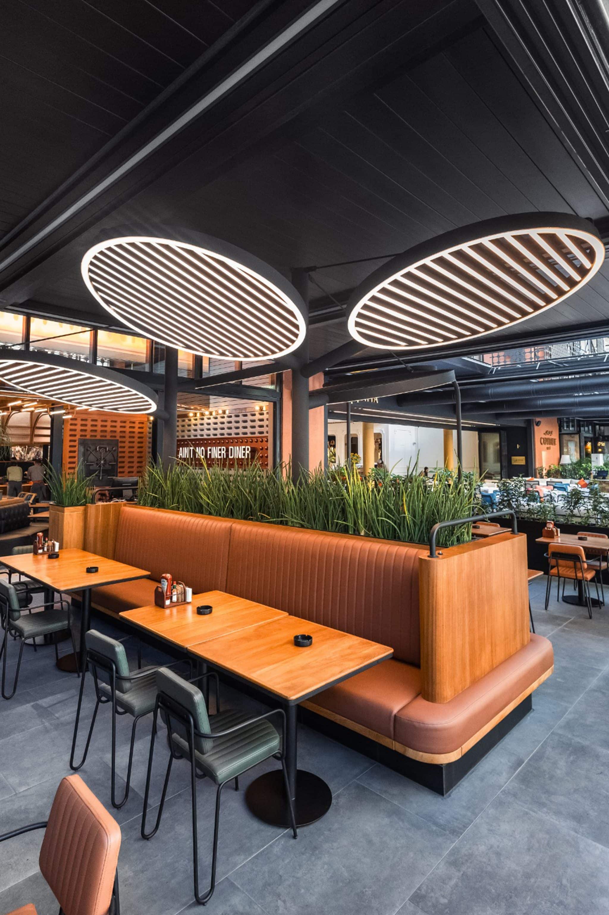 Facade, Canopy Chops Diner Project Details Chops DinerProject Overview:SIMTEC carried out the fabrication and installation of the steel cladding & bench lighting of Chops Diner. Previous OYO Next Cour Constitutionelle