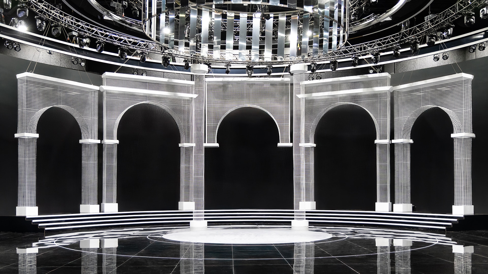 SIMTEC carried out the fabrication and installation these custom metal stage elements for the acclaimed Lebanese show “L’et’s Dabke” on MTV. Bold architectural arches and suspended structures were engineered to deliver a contemporary, high-impact stage presence.