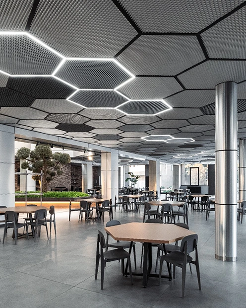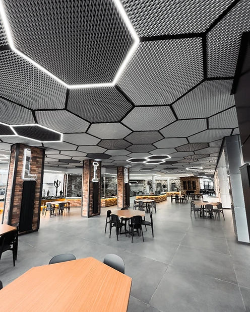 SIMTEC executed this project by designing, fabricating and supplying custom false ceiling systems with expanded mesh, ensuring both structural integrity and aesthetic appeal.