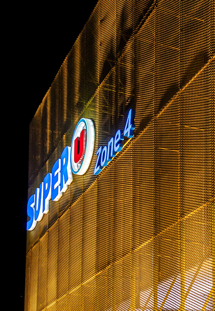 SIMTEC executed the mesh cladding facade of the Super U supermarket, providing a dynamic and modern façade with enhanced ventilation and aesthetic appeal.
