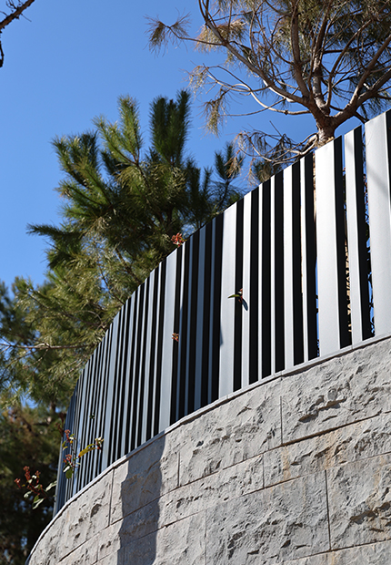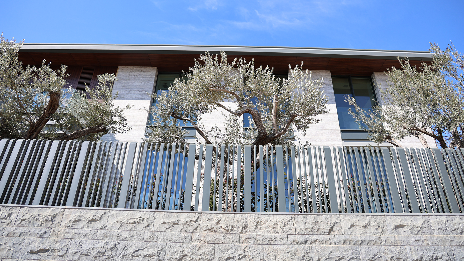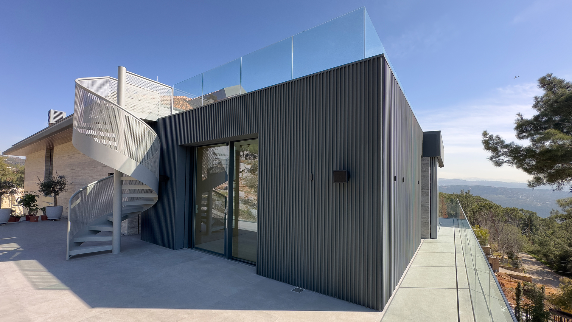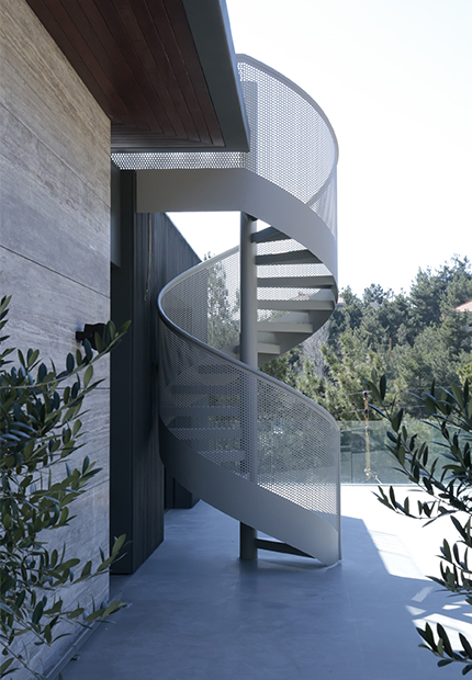 SIMTEC executed the steel fence in the most minimalist aspect. We also executed the helical stair using perforated sheets for the balustrade and we completed the cladding creating an elegant facade to the villa.